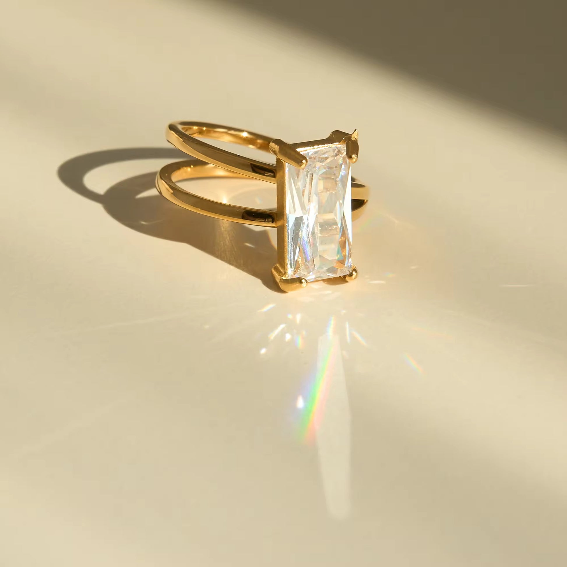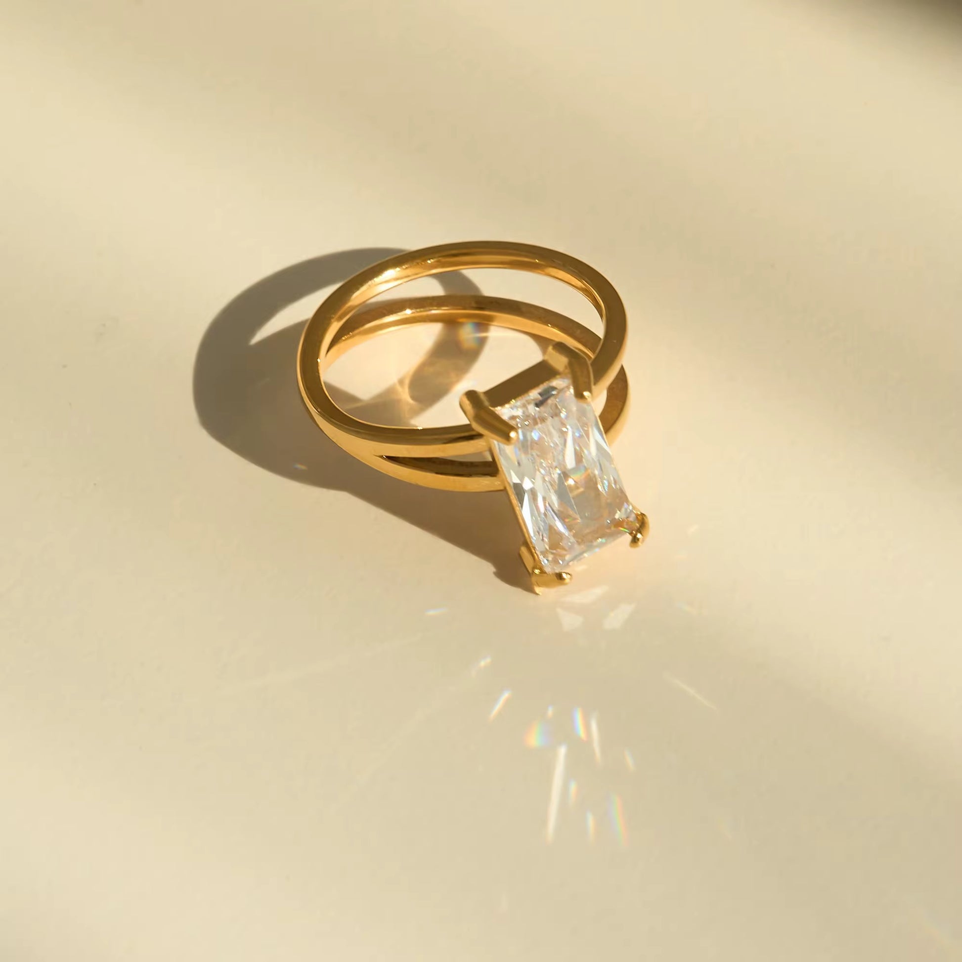 stainless steel 18k gold plated  hypoallergenic cubic zirconia stones . durable for everyday wear.