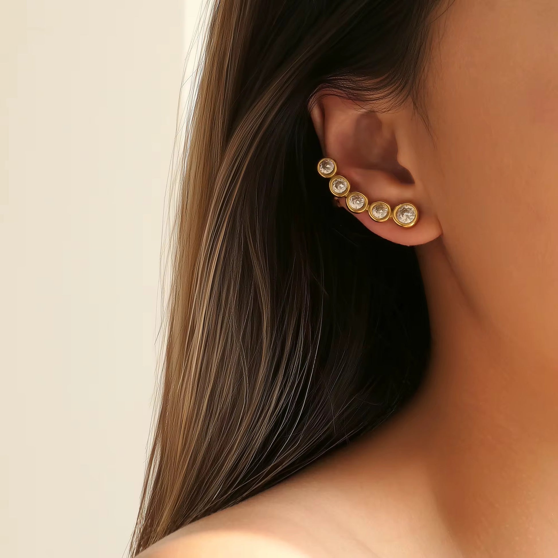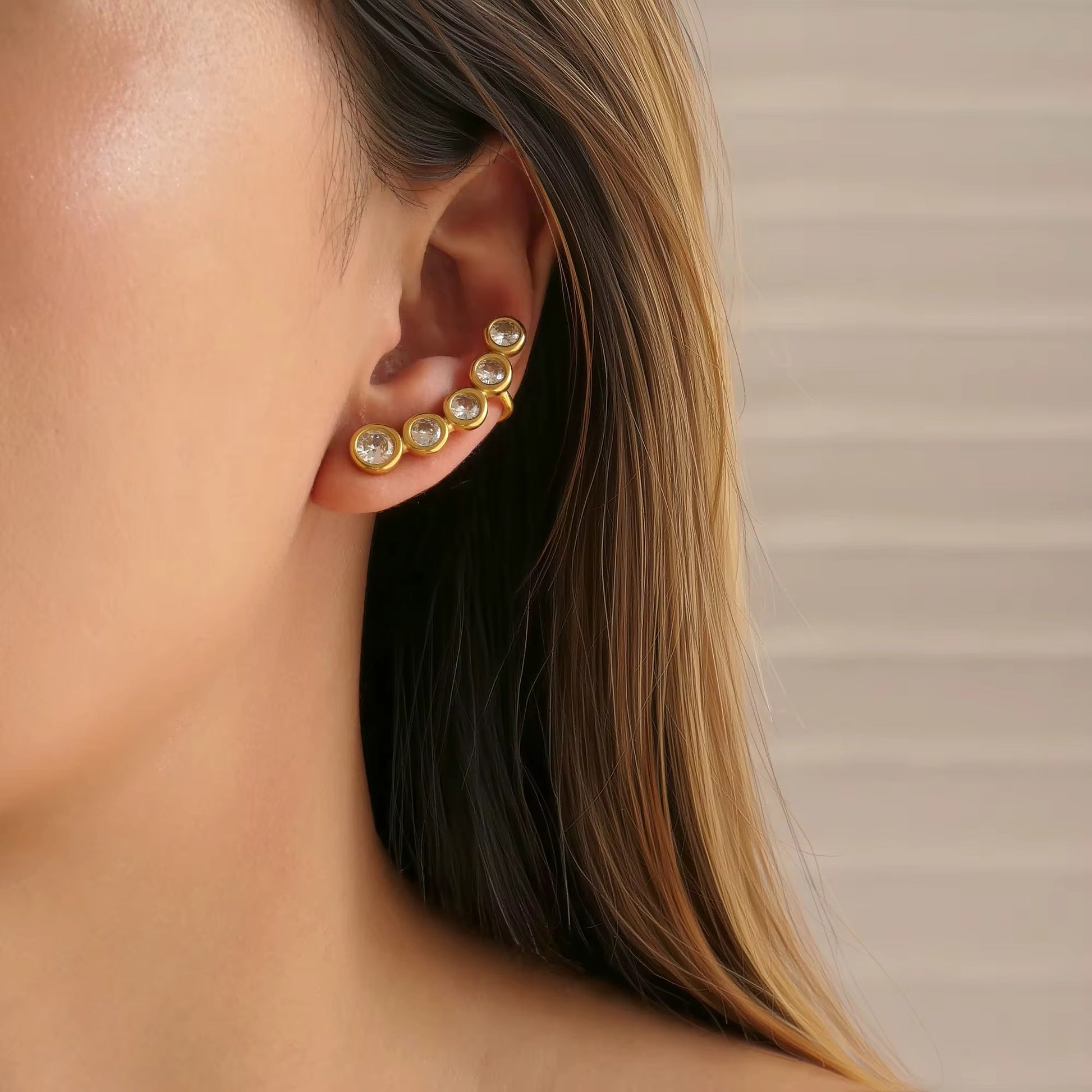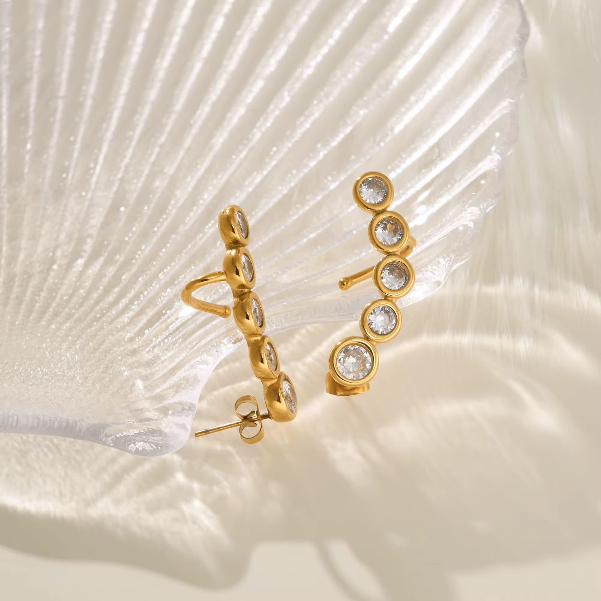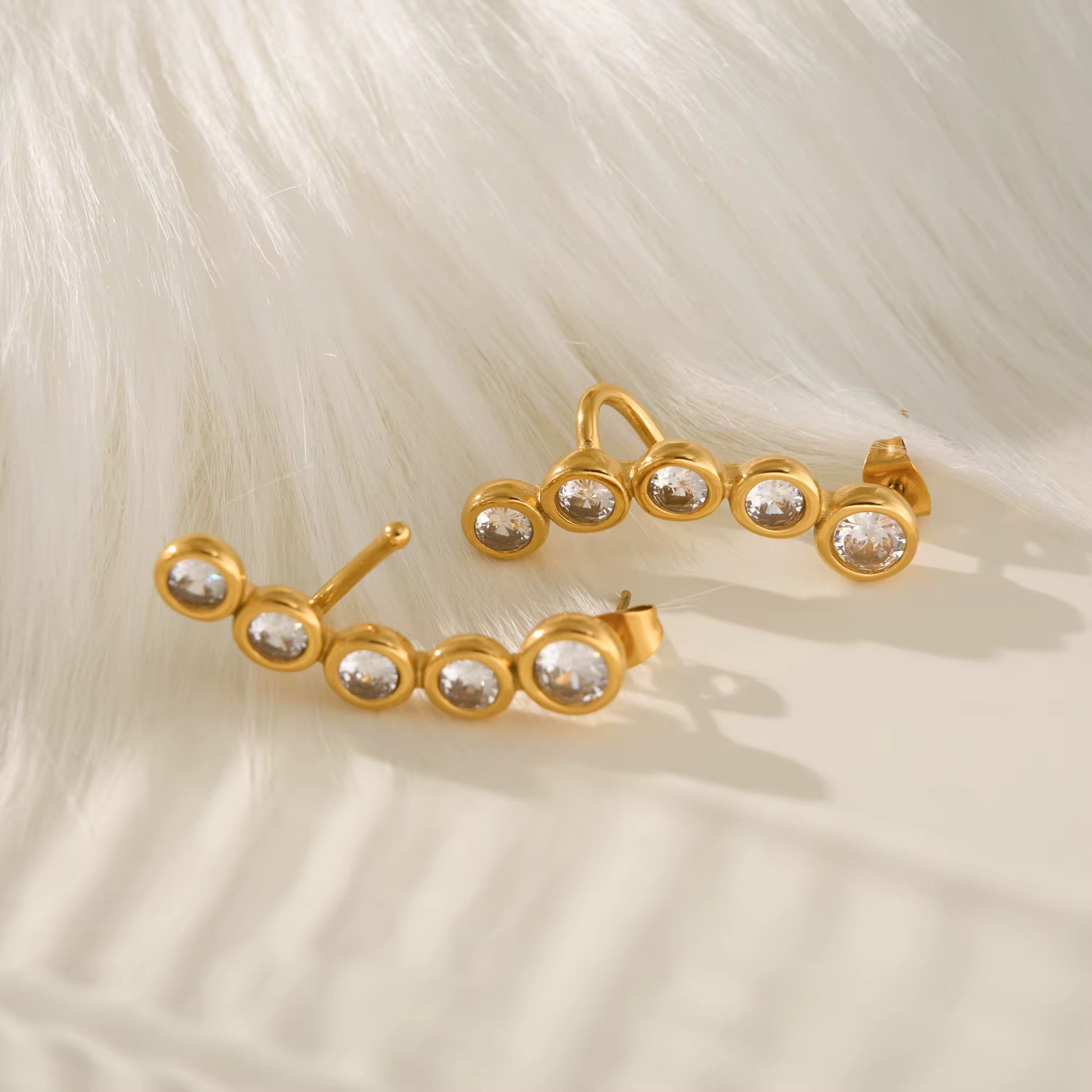 Elegantly crafted CURVE earrings feature vintage pear-shaped zircon stones with DOP certification, set in premium 18K PVD gold-plated stainless steel. This sophisticated design combines timeless appeal with modern durability, offering a luxurious accent to both everyday and special occasion ensembles.