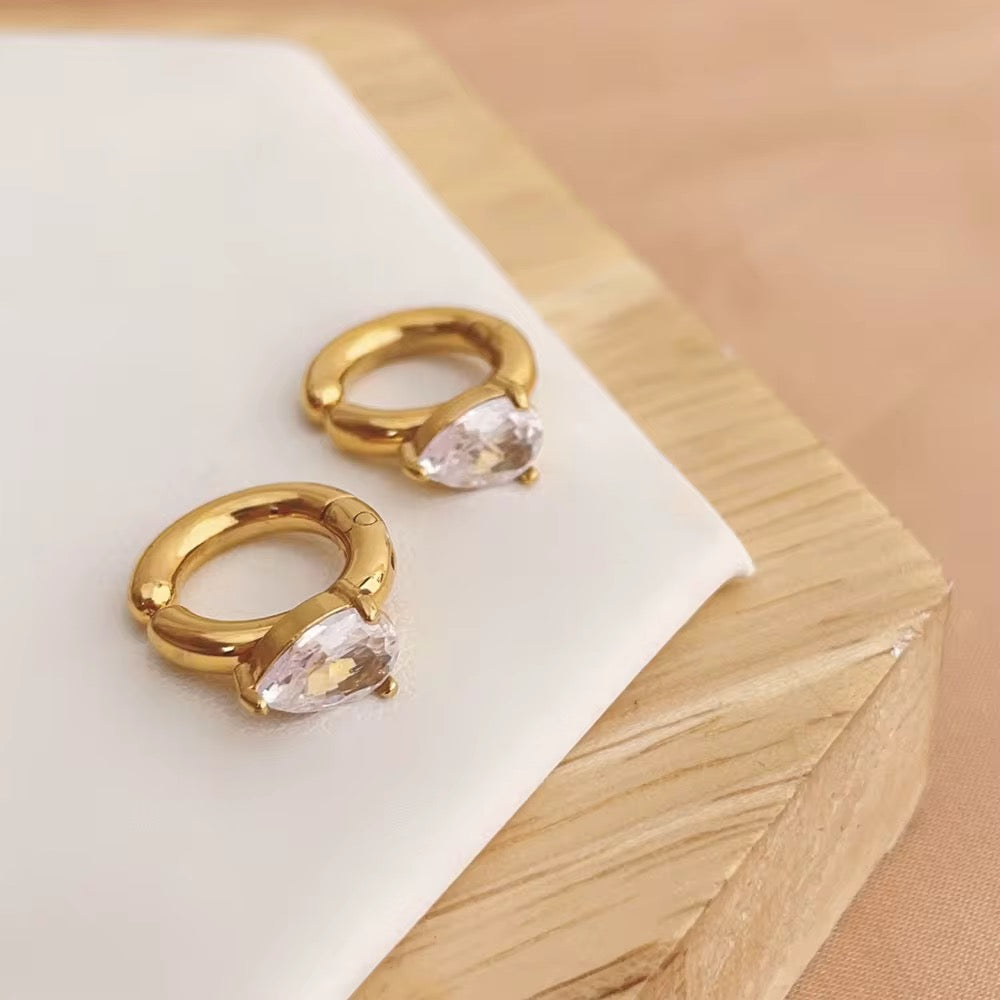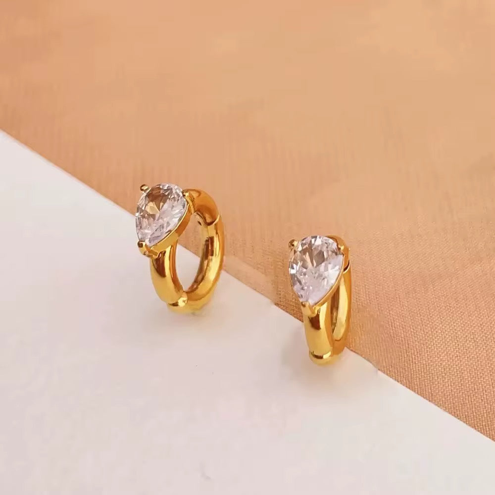 Transform your look with our stunning 18k gold-plated teardrop design, featuring dazzling cubic zirconia that catches every light. Hypoallergenic and minimalist, these pieces deliver luxurious style without compromising sensitive skin. Elevate your everyday elegance with Luzia.