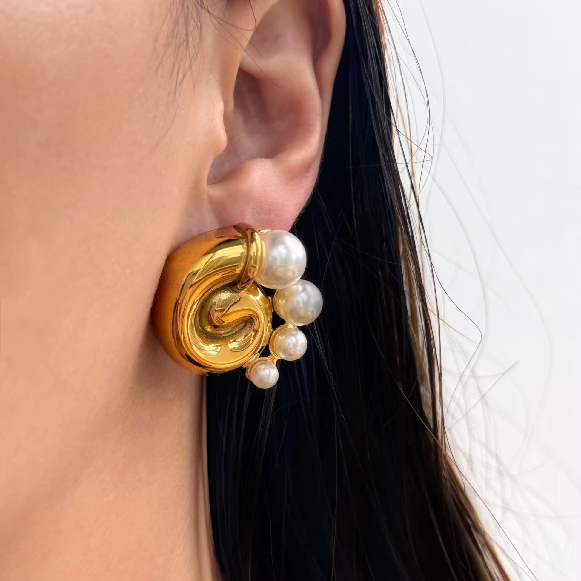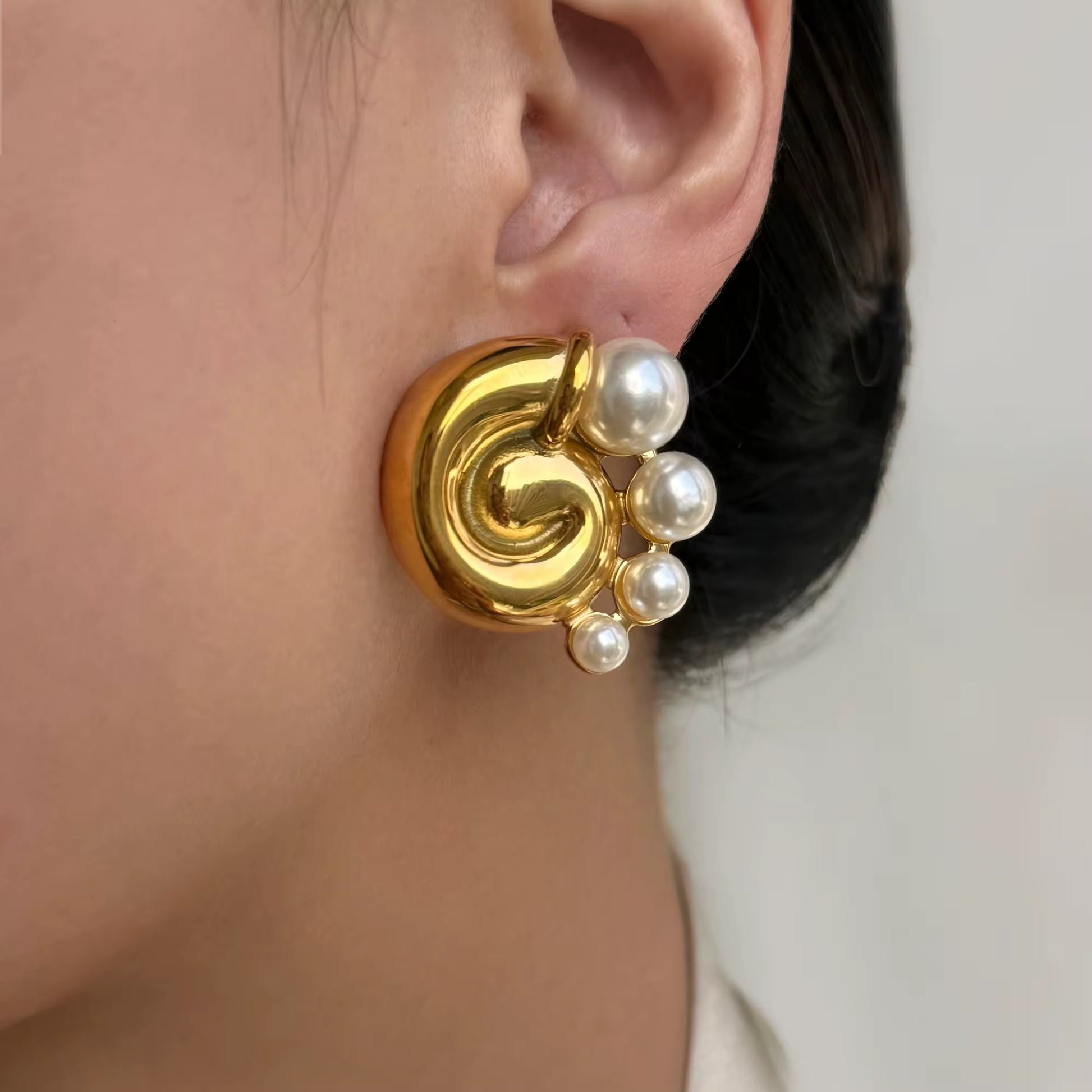 Descubra SWIRL, una exquisita pieza de joyería chapada en oro 18k para la temporada estival. Elaborada en acero inoxidable hipoalergénico con un diseño de caracol distintivo, esta creación combina un brillo extraordinario con elegancia atemporal. Su acabado sofisticado complementa cualquier conjunto mientras garantiza confort para pieles sensibles.